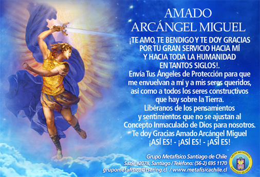 “Yo estoy comprometido con la raza humana hasta el final de los tiempos, a remover hasta el más minúsculo de los electrones calificados con oscuridad que impida su Ascensión, y permaneceré junto a ustedes montando guardia, esperando a que estas oscuridades asomen en los aconteceres de sus vidas para aniquilar con mi espada todo fuero siniestro. No se quejen ni se lamenten de los cambios que puedan acelerar la frecuencia vibratoria de su mundo, volviendo sus entornos diferentes; no saben cuánto las energías siniestras han torcido el curso de sus vidas, y hay que enderezarlas tanto como los entuertos hayan desfigurado el Plan Divino Prístino con el cual descendieron de mi mano un día al Royal Teton, trayendo en sus corazones las más elevadas expectativas de una vida paradisíaca en la Tierra. Pero todo eso fue desbaratado por el maligno, que yo ahora domino amenazándolo con mi Espada, pisándolo con mi pie derecho. Es la manera en que lo pueden imaginar en el mundo de las formas; pero en los planos internos es más terrible que eso. Debido al ‘Libre Albedrío’, si ustedes primero no pisan su propio maligno, a mí me será imposible hacerlo junto a ustedes; así que permítanme, denme paso, otórguenme el permiso para penetrar en sus mundos a realizar la obra que el Altísimo me ha encomendado y que yo mismo juré efectuar ante el Altar la Vida por la Salvación de toda la Tierra.
